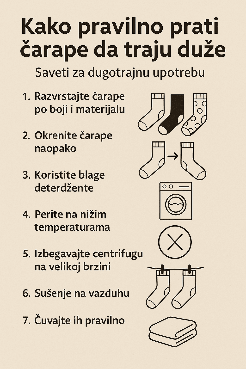 Čarape su neizostavan deo naše garderobe, ali često ih peremo na pogrešan način, što skraćuje njihov vek trajanja. Da biste sačuvali kvalitet, boju i udobnost čarapa, važno je znati kako ih pravilno prati. U ovom tekstu otkrivamo praktične savete kako pravilno prati čarape, kako bi trajale duže i ostale kao nove.